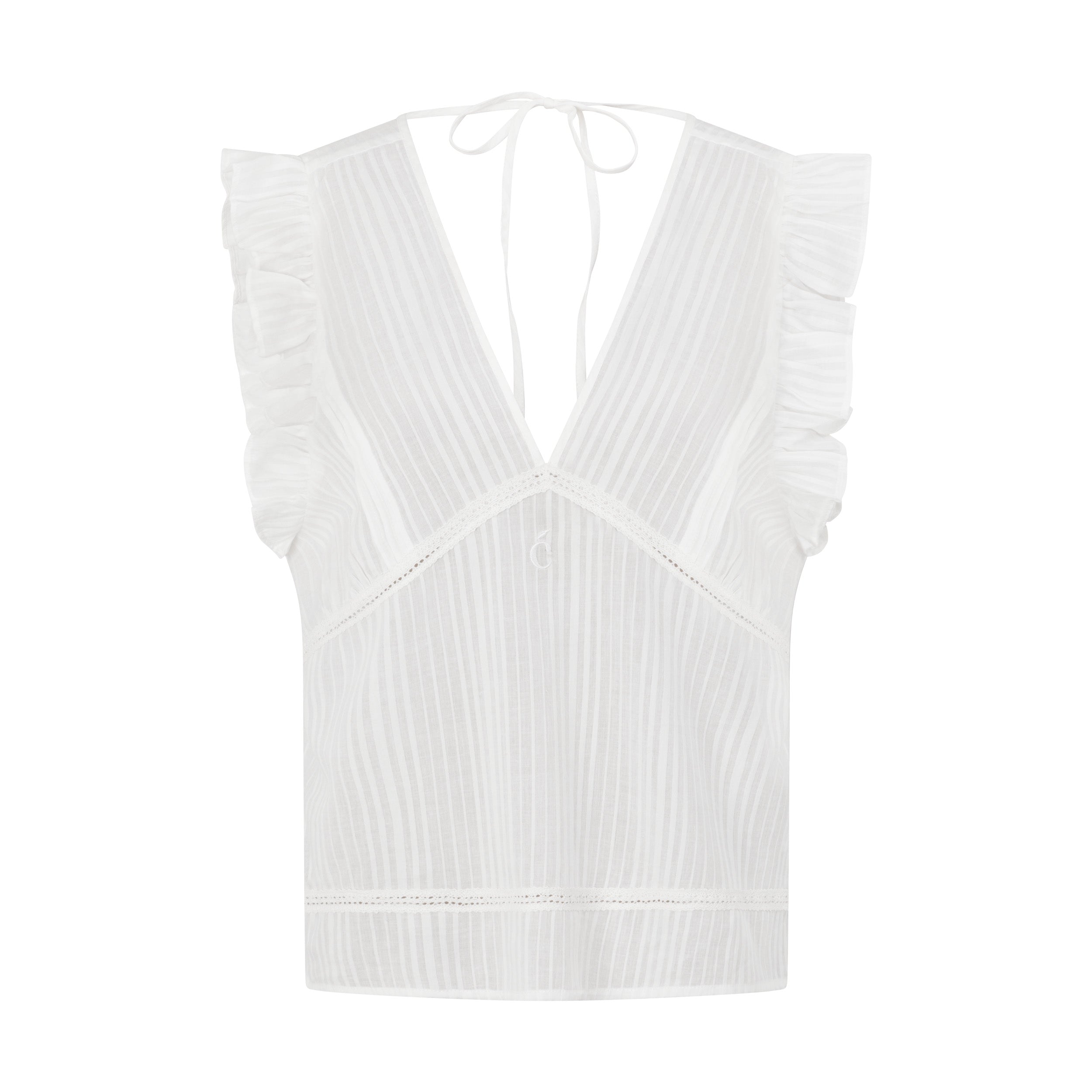 Primavera Sheer Cotton Jacquard Frill Top