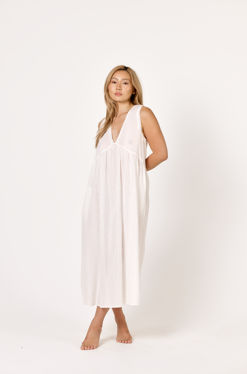 Get ready for your special day with our Sheer Jacquard Night Gown. Made from soft cotton jacquard, it offers comfort and luxury. Designed with hand pockets for tissues and a flowy fit, it's perfect for everyone. Make each morning unforgettable with this elegant and exclusive piece.
