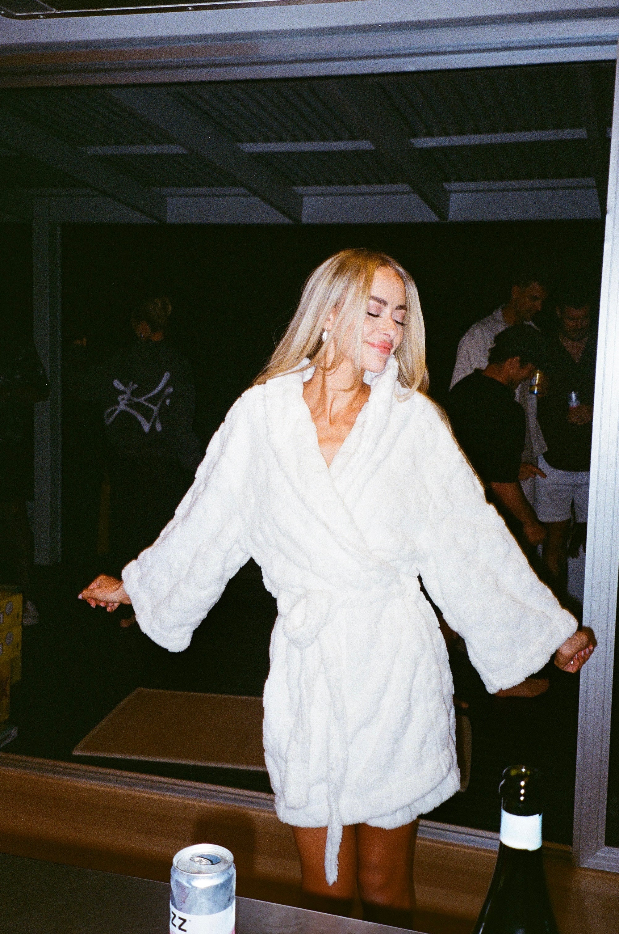 Our delicious fleece robe is designed to be the first thing you reach for when you wake, for those cooler evenings and nights in. She's the perfect addition to lounge around in and feel comfy and cosy in your home and on your special day.